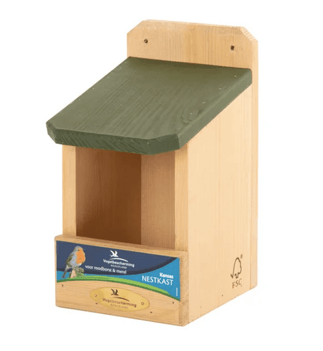 Deze nestkast is halfopen en hierdoor erg geliefd bij de roodborst. Daarnaast kan deze nestkast ook gebruikt worden door andere vogels zoals bijvoorbeeld de winterkoning, de witte kwikstaart, de merel en de grauwe vliegenvanger.