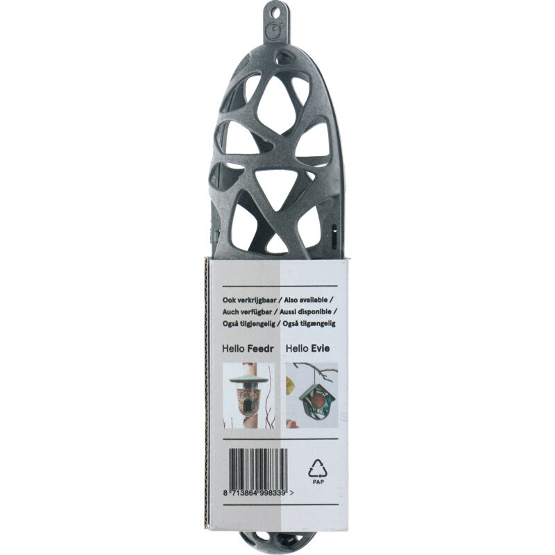 In de koude wintermaanden is het voor vogels belangrijk om goed te eten, maar ook in de andere seizoenen hebben tuinvogels aanvullend voedsel nodig. Met deze elegante vetbolhouder kun jij de tuinvogels een handje helpen. De houder is gemakkelijk te vullen worden met vetbollen. De houder kan opengeklapt worden, zodat je de bollen er in kan doen. Met het oogje aan de houder kun je deze eenvoudig ophangen aan een draad of haak. Het voordeel van een houder is dat vogels zich beter vast kunnen houden aan de houder zelf en zo fijner kunnen eten. De vetbolhouder is bovendien gemaakt van 100% gerecycled materiaal. Geniet van smullende en dankbare vogels met deze elegante vetbolhouder.