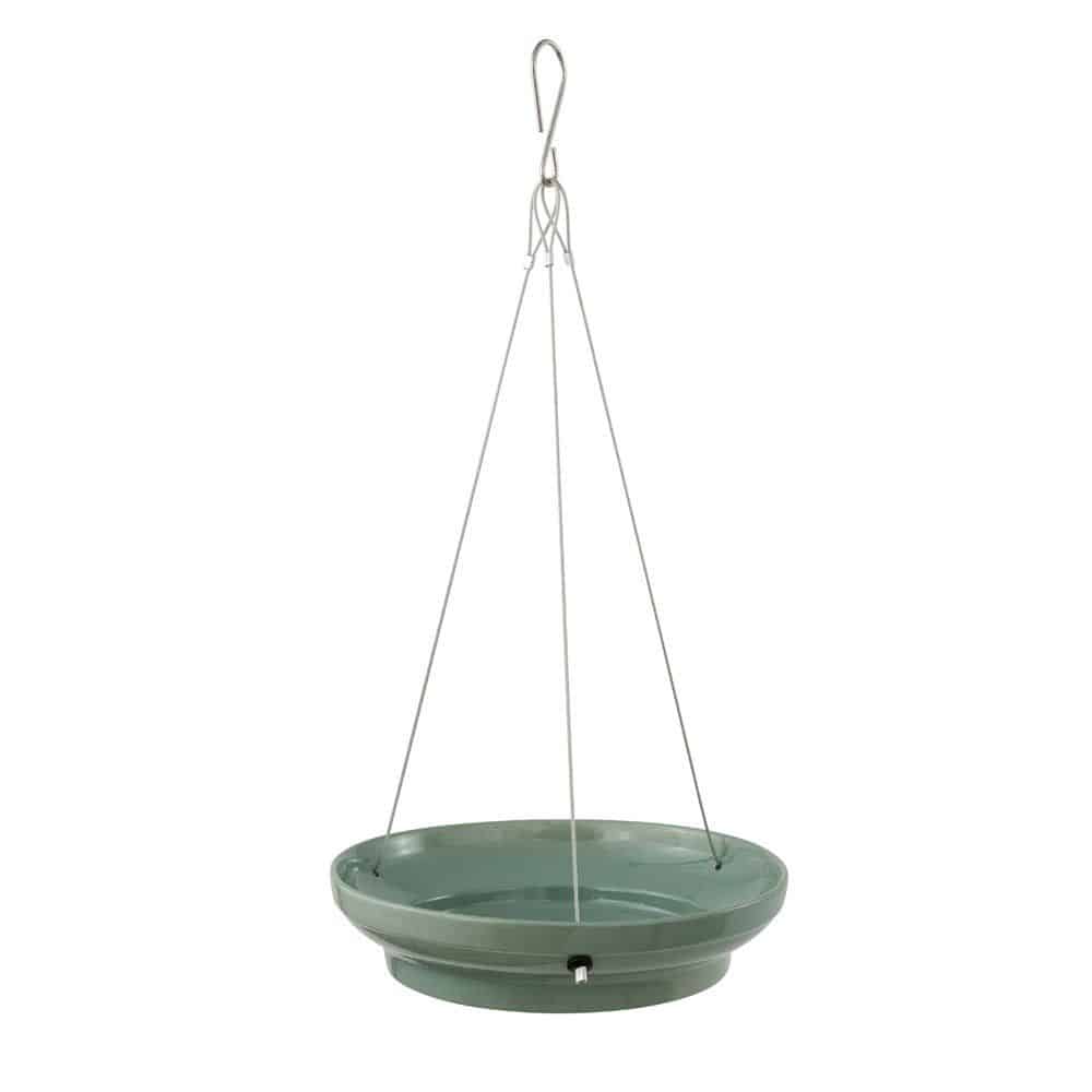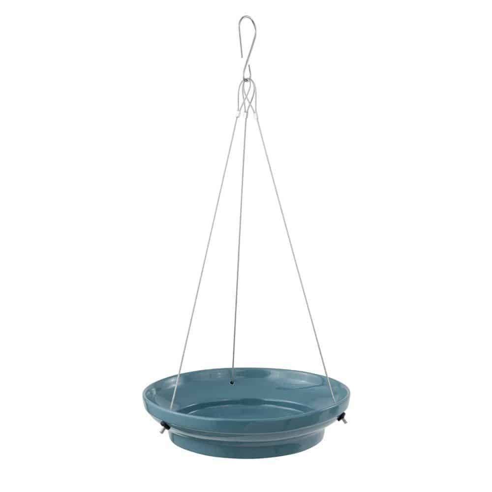Deze Vesi waterschaal wordt geleverd in de kleur blauw of groen. Met de metalen ophangkoorden kun je de schaal gemakkelijk ophangen aan een boom of ophanghaak. De schaal heeft een diameter van 26cm en er kan ongeveer 800ml water in de schaal.