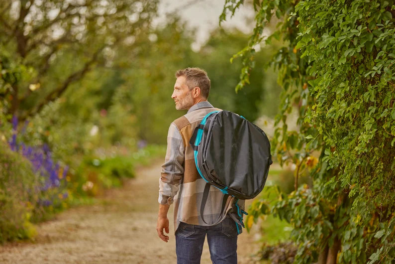 - Spaart de rug: je kunt de rechthoekige tuinafvalzak op zijn kant leggen om er afval ergonomisch in te harken