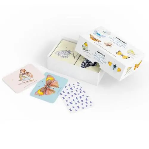 Met dit memoryspel van de Vlinderstichting leer je spelenderwijs van 25 vlindersoorten – die in Nederland voorkomen – hoe hun open- en dichtgevouwen vleugels eruit zien. Een leuk spel voor jong en oud waarbij je steeds meer leert over de inheemse vlindersoorten!