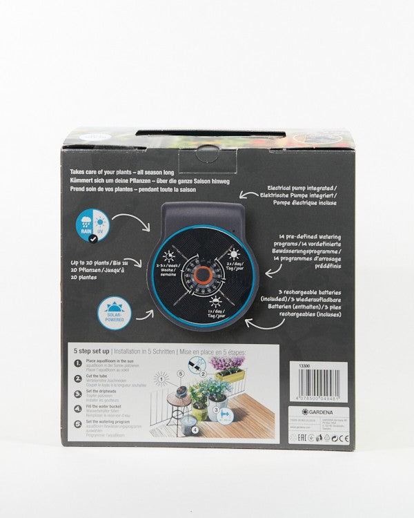 Met de AquaBloom heeft Gardena de meest ideale irrigatie oplossing voor je balkon ontwikkeld. Bewater tot wel 20 planten zonder een (groene) vinger uit te steken. Ideaal voor tijdens je vakantie! De AquaBloom werkt zonder stroomaansluiting of waterkraan en kan je gemakkelijk ophangen op een zonnig plekje. Het enige wat de AquaBloom nodig heeft is een waterreservoir zoals bijvoorbeeld een regenton.